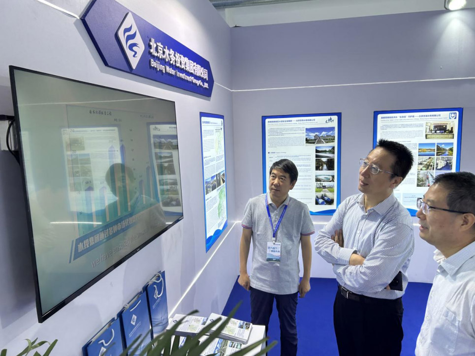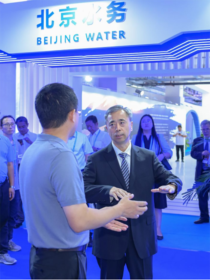 9月11日,北京市水务局局长潘安君参观北京水务展区, 并前往开云官方版网站登录入口展位参观指导,开云官方版网站登录入口总会计师张睿、副总经理张文理陪同。